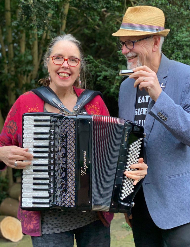 Mark has twice been a national champion harmonica player, while Liz has played accordion as long as she remembers, having picked up her father’s when she was a child in Orkney. Together they form half of the Leicester roots band, Looma, and play a variety of songs and tunes gathered from many traditions- anything that will get feet tapping!